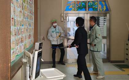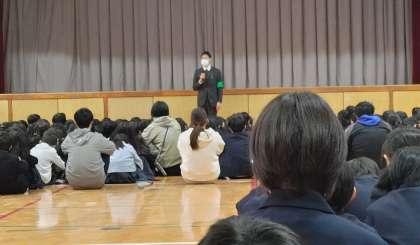 最後に講堂に集合し,東警察署と中央区役所の方のお話を聞きました。