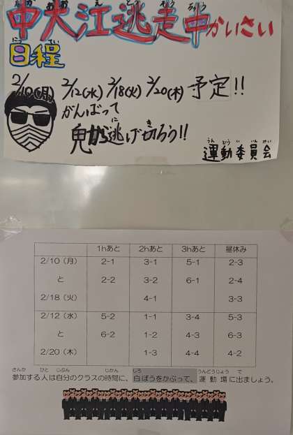 2学期に実施して好評だった運動委員会主催の「なかおおえ〜逃走中〜」をします。