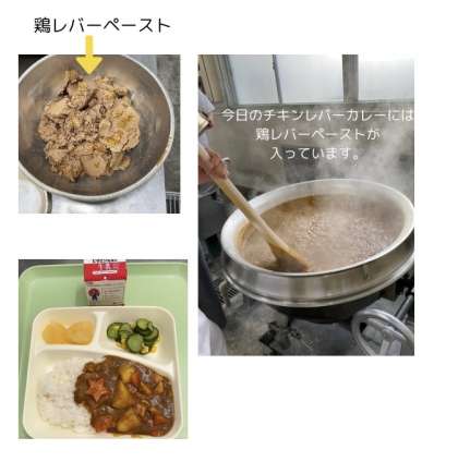 写真(1枚目)・・・給食見本・鶏レバーペーストについて