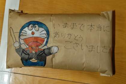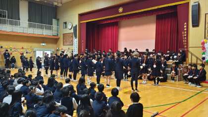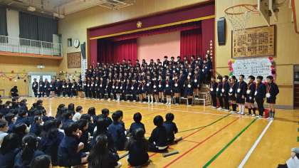 6年生からのお礼の合唱の後,1〜5年生に「学校をきれいにしてね」という思いのこもった雑巾のプレゼントがありました。