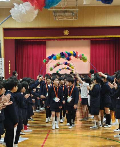 この日のために作ったアーチで花道をつくり,1〜5年生みんなで6年生を送り出しました。卒業性も在校生も,みんなやり切ったという満足そうな表情でした。
