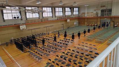たくさんのいすが並んだ講堂は,先週までと雰囲気が違ったようで「すごい。」とつぶやく子が何人もいました。