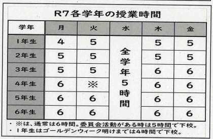 3学期末にお配りした「学校だより(最終号)」にも記載しましたが,各学年・各教科の使用ノート」と「各学年の授業時間」についてご確認ください。