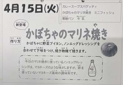 今日は、メニューとして、初登場の「かぼちゃのマリネ焼き」がありました。