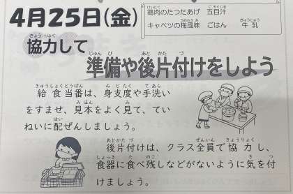 今日は、鶏肉のたつたあげ、キャベツの梅風味、五目汁でした。
