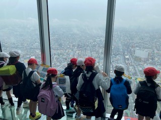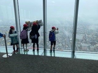 ハルカスの中では、班で活動し、東西南北それぞれの景色から、見えるものを確認しました。