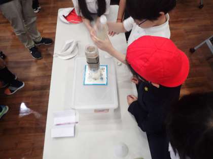 そのあとは、水を実際にろ過して、きれいになることを体感しました。