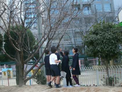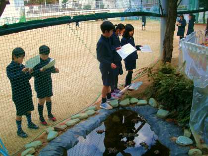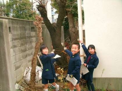 6時間目。運動場では、飼育栽培委員会の子どもたちが紙を手にして大声でなにやら話していました。何をしているのかを聞いてみると、「委員会で校内の木を調べています」と答えが返ってきました。名前もわからない木より、何の木かわかった方がずっと親しみが湧いてくるのは動物も植物も同じです。飼育栽培員会の皆さん、寒い中ご苦労様!