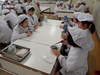 5年生は「クッキング はじめの一歩」で調理実習をしました。