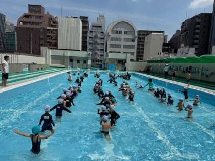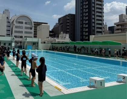 プール開きは、気を付けること、プールへの入り方等を確認していきます。