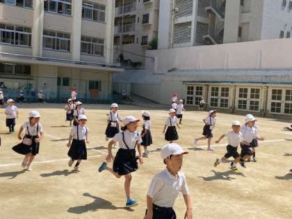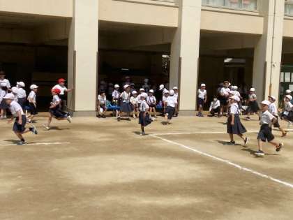 5・6年生の運動委員会が中心になって、休み時間のおにごっこ中大江「逃走中」をしています。