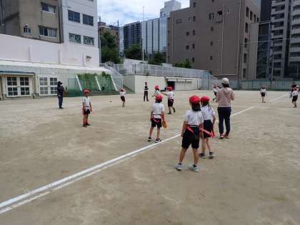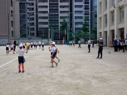 タグラグビーでしたが、チームごとに作戦を選んで、ゲーム内で実践していました。