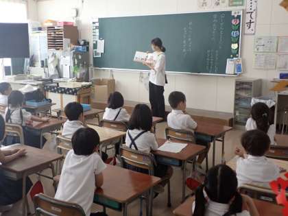 今日は、1,3,5年で読み聞かせをしていただきました。