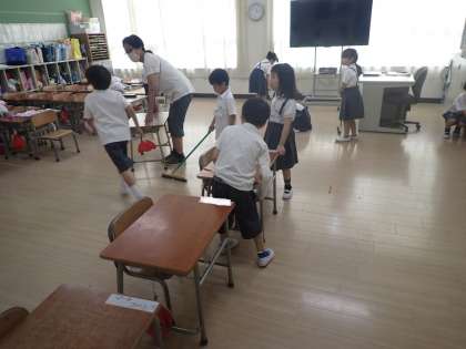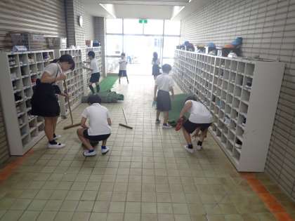 その前に、1学期間使い続けた教室や校舎をきれいにしようと大掃除を行いました。