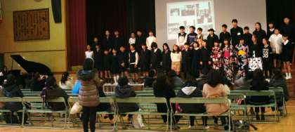 5時間目。4・5・6年生の学習参観及び学級懇談会が開かれました。今年最後の参観授業となるので、どの学級・学年もフロンティアの活動として、個人の成長の歩みや学級の取組みの振り返り、そして歌や作文などを交えながら家族への感謝の思いなどを伝える発表会形式の授業を行っていました。