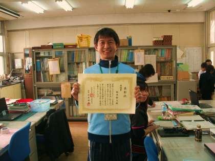 本校の稲井雅大教諭は、大阪市教育委員会事業「がんばる先生支援個人・グループ研究」に3年連続で選ばれています。さらにこのたび、日本教育会主催の平成27年度教育実践顕彰事業に応募した論文が、なんと全国第2位に相当する「奨励賞」を受賞しました。