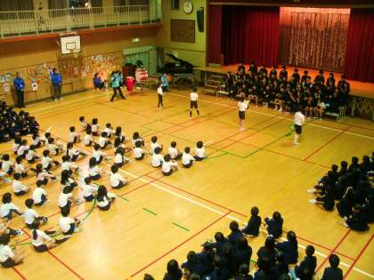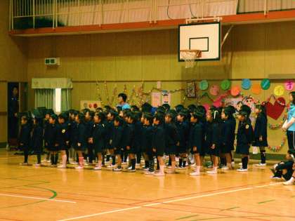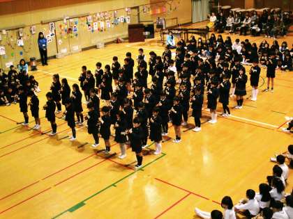 クラスの団結力やリーダーシップで下級生の模範となり、優しさあふれる行動で誰からも慕われている6年生(通称ロクノイチ)の[卒業を祝う会]が講堂で開かれました。