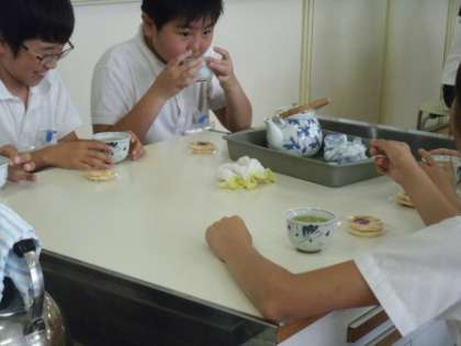 家庭科の学習で、日本茶のいれ方を学習しました。