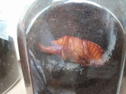 クラスの友達が持ってきてくれたカブトムシのさなぎです。