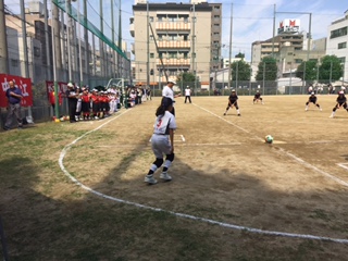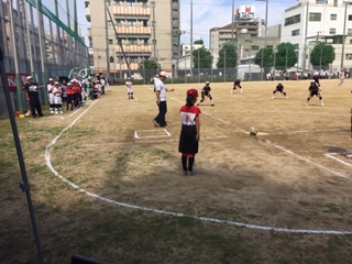 開平小学校の選手と一緒にプレー