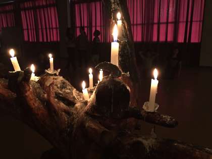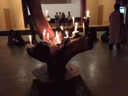 日が傾きはじめ、講堂でキャンドルファイヤーが始まりました。