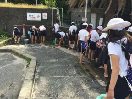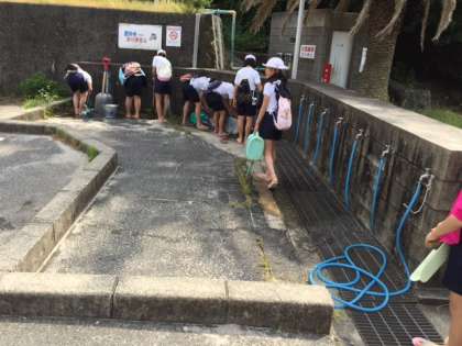 砂を洗い流しています。今日も、大きなけがや病人もなく宿舎へ戻ることができました。