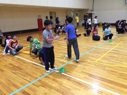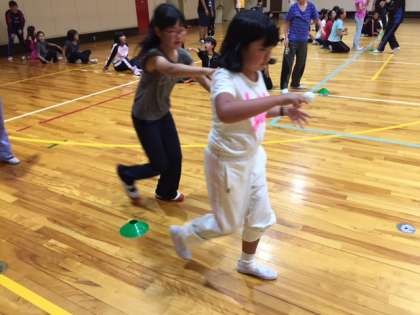 ピンポンリレーです。途中で落とすとスタートからのやり直しになります。