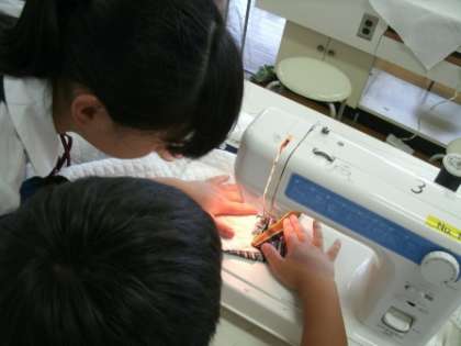 林間学習に持っていく「ナップサック」を作っています。
