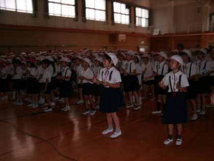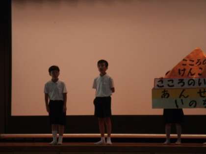 保健委員会のメンバーが、「あいさつ」について考えるために