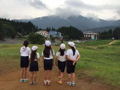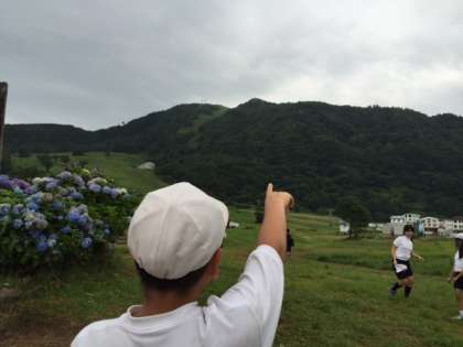 声が こだま しています。また、頂上を指差している人もいます。