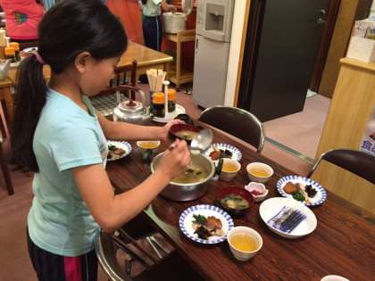 係りの人は、朝食の準備を始めました。