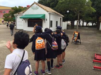 レストランの前で記念撮影してから班ごとに 活動開始です。