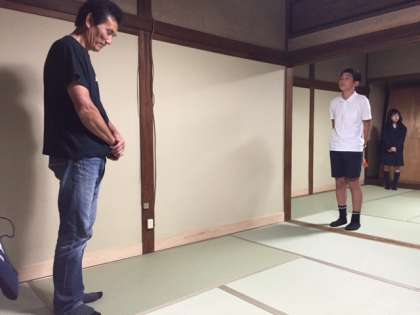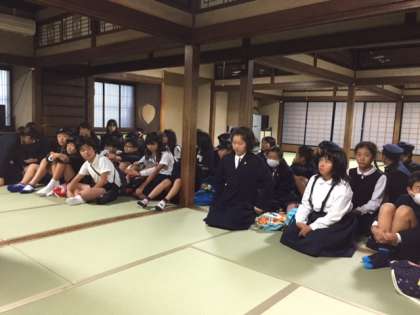 児童の代表が宿舎の方へお世話になる気持ちを伝えました。