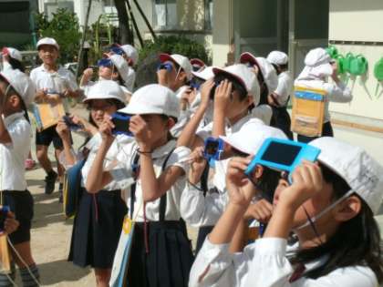 よく晴れた日に、太陽めがねを使って太陽の観察をしました。