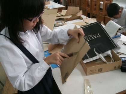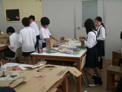図画工作科の時間に段ボールを使って、