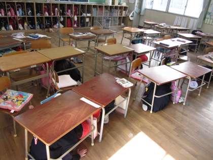 子どもたちは自分で判断して行動しなければなりませんでしたが、静かに放送を聞き、教頭先生の指示に従って机の下に身を隠したり、運動場の中心に集まったりと素早く行動することができました。