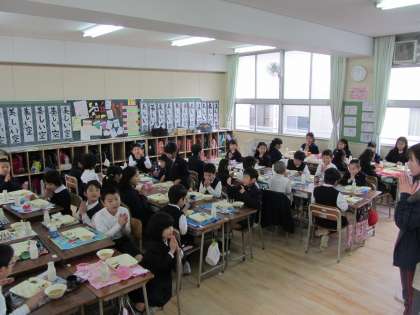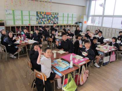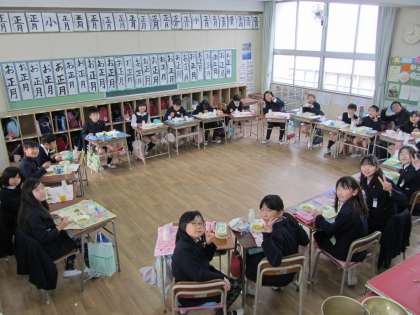 今日は、1・6年生、2・4年生、3・5年生のペア学年で給食を食べました。