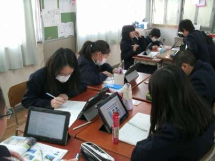 社会科の調べ学習ではタブレットを使っています。
