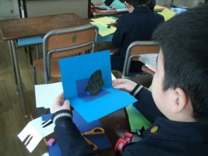 図画工作科では、とびだすしかけのあるカードを作っています。