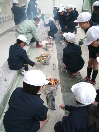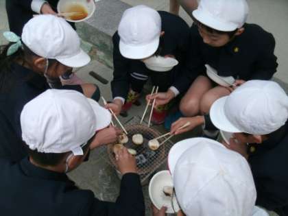 七輪を使っておもちを焼く活動をしました。