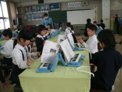 けんばんハーモニカ、もっきん、タンブリン、すず、カスタネットを