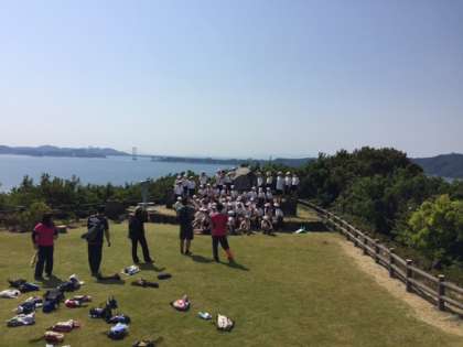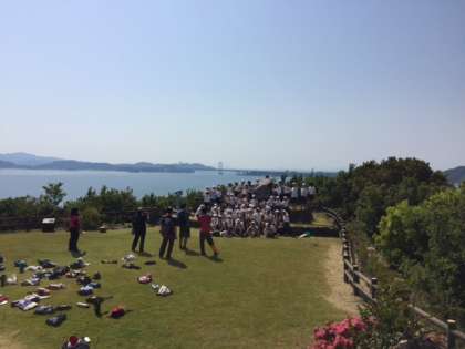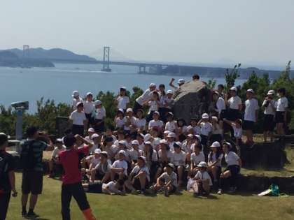 記念撮影です。後方に大鳴門橋が見えます。