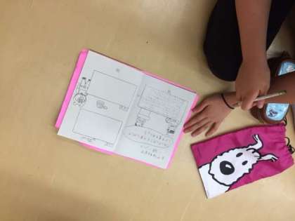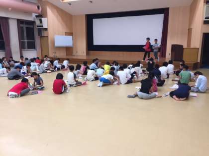 お茶を水筒に入れてもらっている時 子供たちは1日の振り返リをしています。