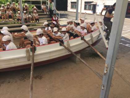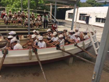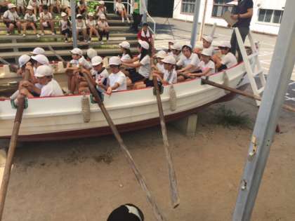 いよいよ漕ぐ練習です。船の重さは2トンとのことです。