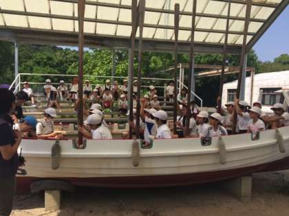 戻って来る時の練習です。岸に近ずくと 櫂たてをします。そしてボートフックの係の人が岸に船が当たらないようにします。