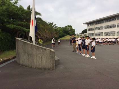 朝のつどいです。体調をくずした人もなく、最後の日を迎えています。