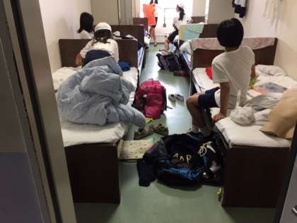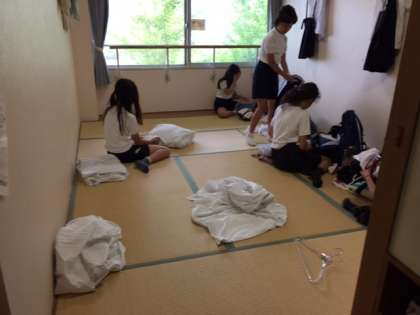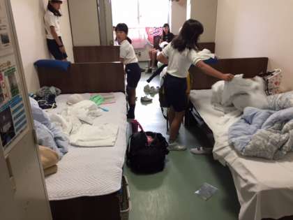 朝食までに、部屋の片付けをし 自分たちが利用したフロアも清掃を行います。宿舎の方のチェックに合格する必要があります。