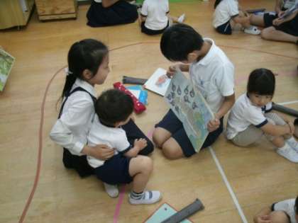 5年生が幼稚園へ行って、絵本の読み聞かせをしました。