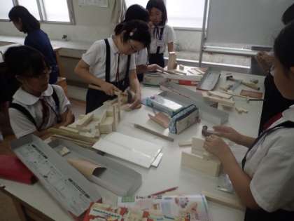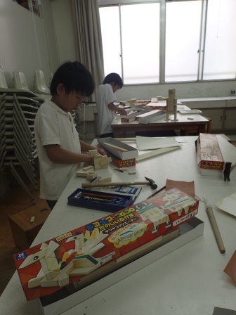 木材をのこぎりで切ったり、かなづちでくぎを打ったりして