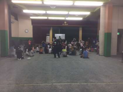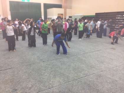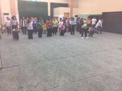 ジャンプリレーです。一人ずつ交代しながら 立ち幅跳びでゴール目指して進みます。
